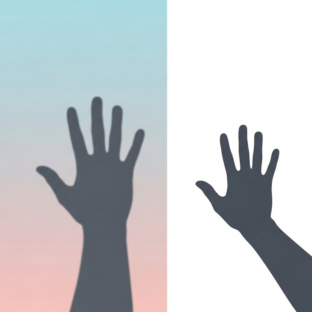 手を壁から離すと影は大きくぼやけますが、壁に近づけると指の形までクッキリ見えます。