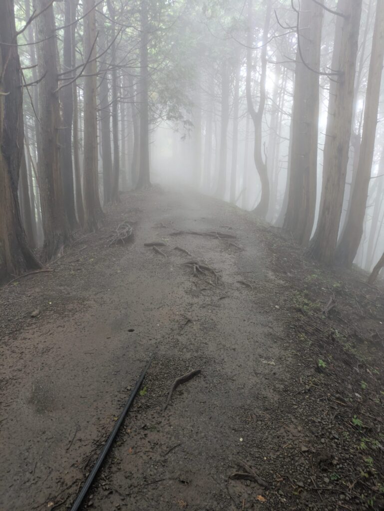 山の上の方はさらに風が強く、視界も悪く、もはや修行のような状態。