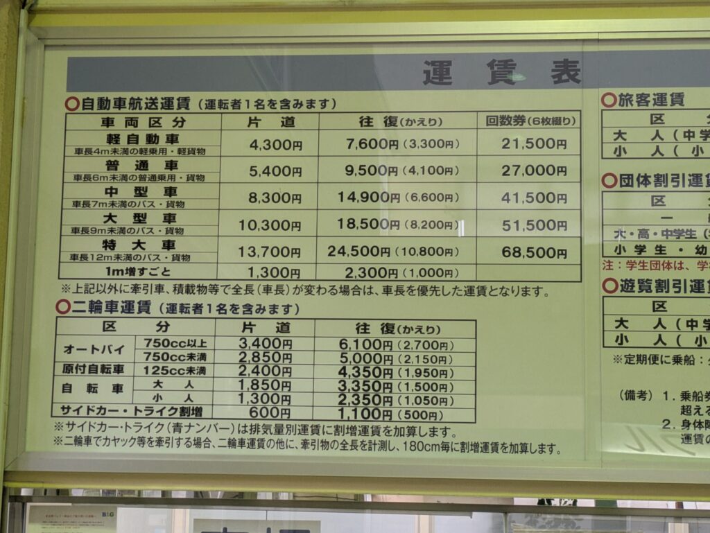 | Ferry (Car + 1 driver) | One way $35 / Round-trip $63 |