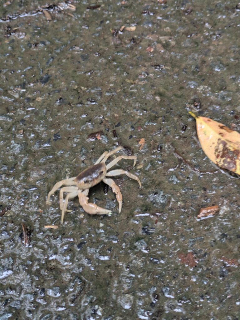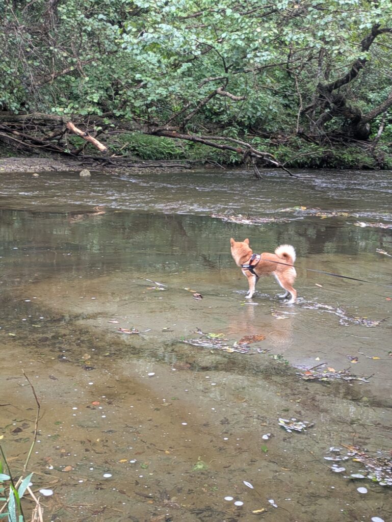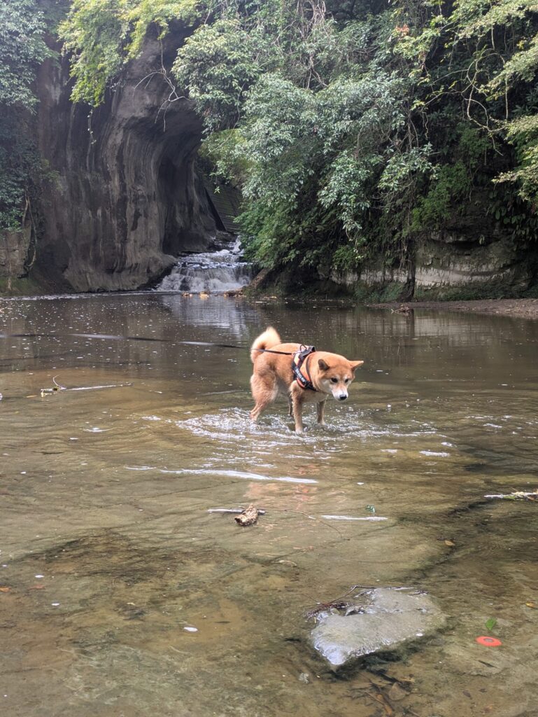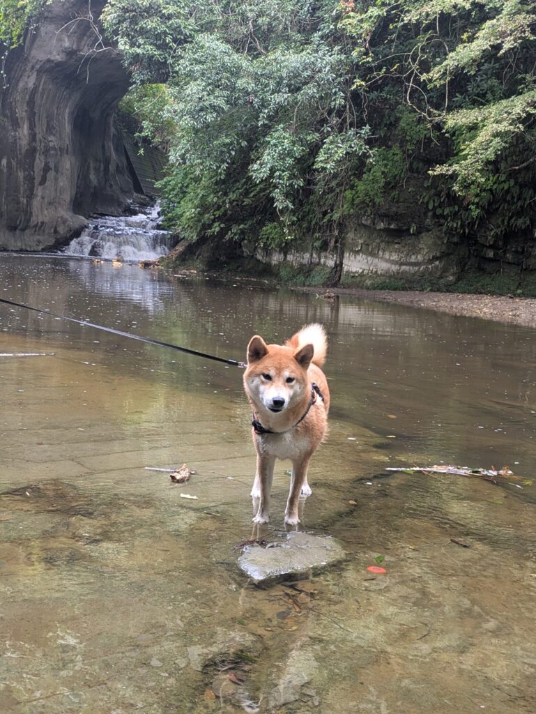 After rain, it’s muddy and slippery. Momiji tried to chase a crab—classic dog move.
