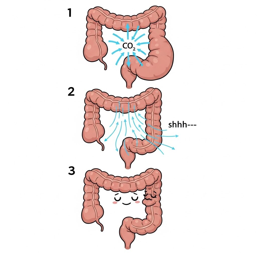 Afterward, the CO₂ is absorbed by the body and exhaled naturally. The bloating feeling disappeared within minutes.