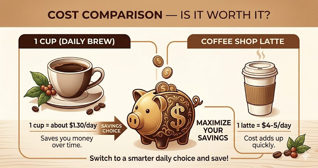 It’s more than bargain-bin instant, but cheaper than a daily convenience store run. If you’re already spending $1+ a day on coffee, this actually saves you money.