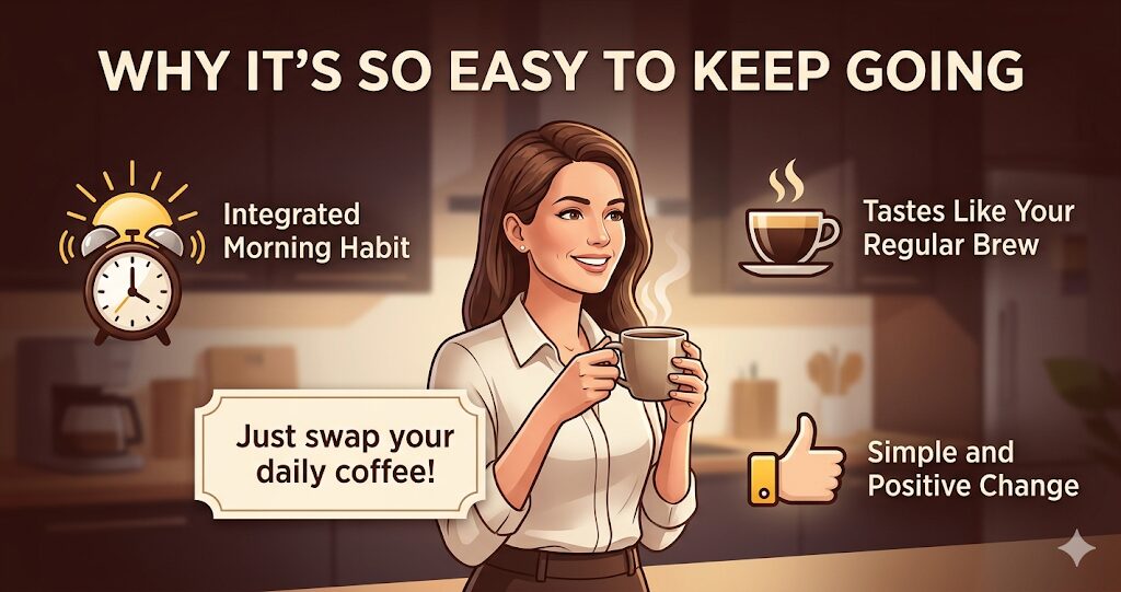 If you already drink coffee every day, you can start a diet effort just by swapping your usual cup. No new habits to build. You’re literally doing what you already do — just with a slightly different powder in your mug.